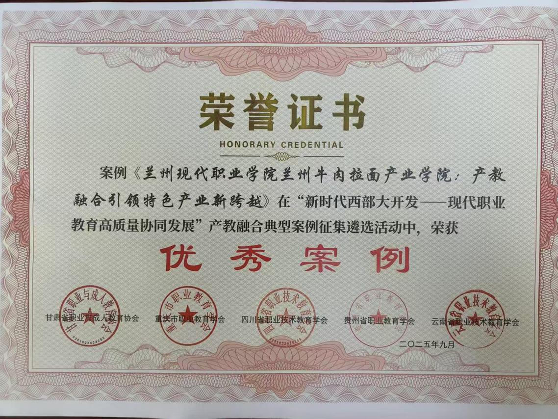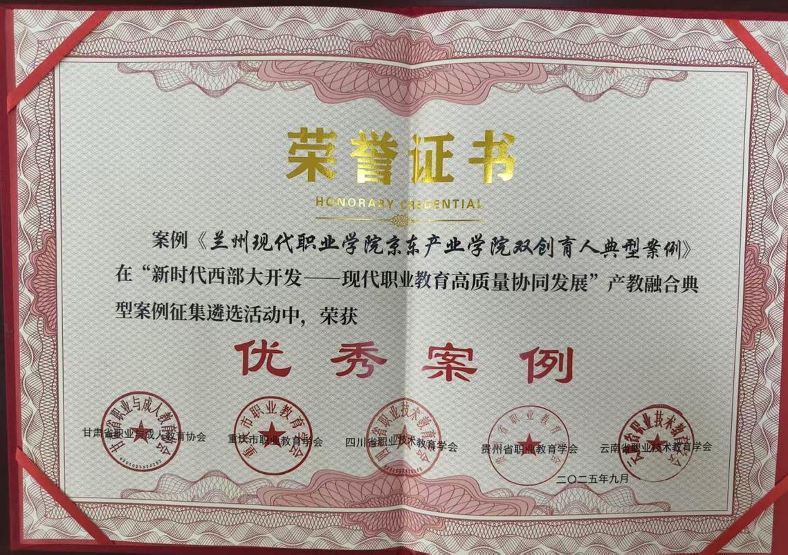 近日,在“新时代西部大开发——现代职业教育高质量协同发展”产教融合典型案例评选中,我院三项产教融合案例——《兰州现代职业学院兰州牛肉拉面产业学院:产教融合引领特色产业新跨越》《兰州现代职业学院京东产业学院双创育人典型案例》以及《筑巢引凤 共建共享 人才共育 校企共赢——校企合作促进中职专业汽修专业建设典型案例》,获“优秀案例”奖,并被收录于《甘肃省职业与成人教育协会产教融合典型案例汇编》。同时,我院杨震荣、耿宁聆、张文川三名同学荣获“技术技能之星”称号,展现出学院在技能人才培养方面的扎实成效。